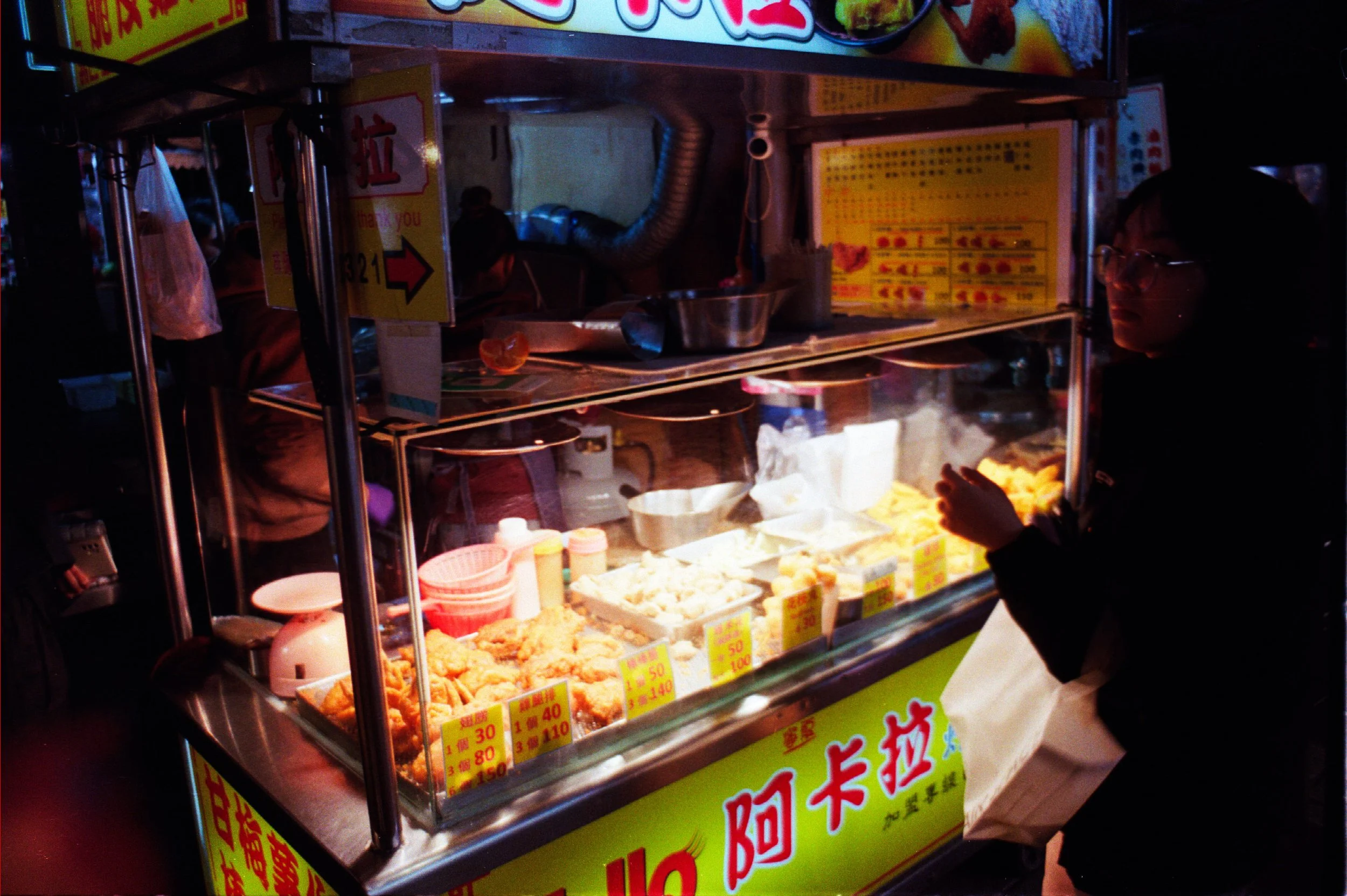 La nourriture reste l'attraction principale. Omelette aux huîtres, poulet frit géant, saucisses grillées, tofu fermenté à l'odeur plus que reconnaissable, chaque stand est souvent spécialisé dans une seule chose, faite depuis des années, parfois des décennies.